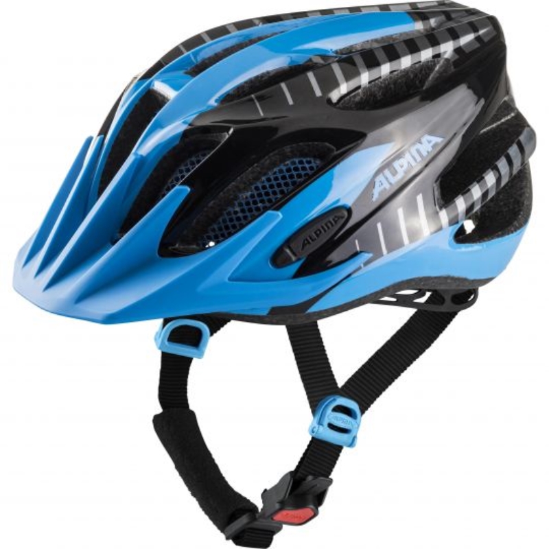Dětská/juniorská helma na kolo Alpina FB Junior 2.0 - je vyrobená moderní in-mold technologií (vstřikováním a lisováním). Bezpečnost je v Alpině na prvním místě a proto ani u dětských či juniorských přileb nenajdete laciné helmy vyráběné zastaralou metodou tzv. lepením. Vrchní plastová skořepina je z polykarbonátu, který se používá např. i jako folie do neprůstřelných oken. Součástí přilby je i blikačka umístěná na zadní straně. Blikačka se dá velmi snadno sundat. Helma je velmi dobře odvětraná pomocí 18- ti větracích otvorů. V přední části přilby je ochranná síťka proti hmyzu. Seřizování velikosti přilby pomocí „Run System“, který se dá ovládat velmi pohodlně i za jízdy pouze jednou rukou. Přilba na kolo Alpina FB Junior 2.0 se vyrábí ve velikosti 50-55cm. Hmotnost přilby je 240g.