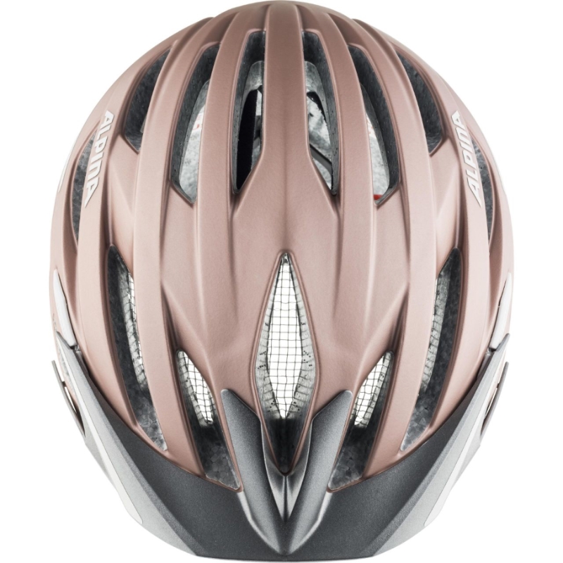Cyklistická helma Alpina Haga má na zadní straně integrovanou odnímací blikačku, bezpečnostní reflexní prvky po stranách a také reflexní nití prošité popruhy přilby. Tato cyklistická přilba se vyrábí ve třech rozměrech, kdy ten největší je až do 63 cm, který je vhodný pro opravdu velké hlavy. Helma je velmi dobře odvětraná 20-ti průduchy. Váha včetně blikačky je 300g. Haga je ideální cyklo přilba do města a ne jen tam.