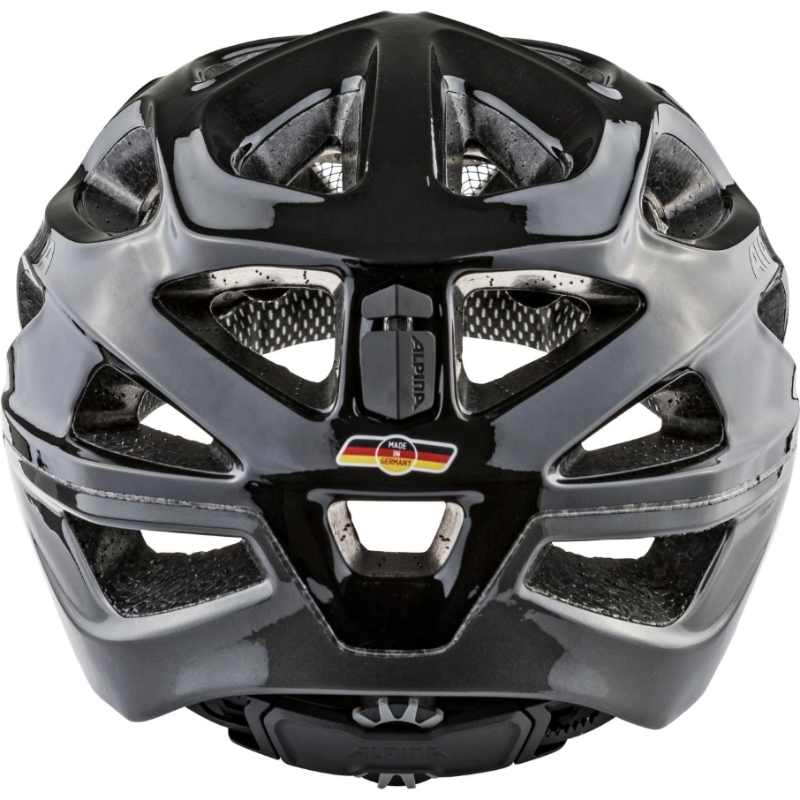 Alpina Mythos je přilba na kolo vyrobená double-in mold technologií. Řada 3.0 je letošní novinkou. Je to již třetí velmi úspěšná série modelu Mythos, který je evergreenem v celé nabídce cyklistických přileb Alpina. Do nové řady 3.0 si model Alpina Mythos přenesl všechny výhody svých předchůdců. Novinkou designu je mírně protažený zátylek a více prokrojený boční tvar přilby oproti řadě 2.0. Asi největší devizou pro naše středoevropské hlavy je, že velmi dobře sedne. Proto tvar vnitřní skořepiny helmy zůstal stejný. Vrchní plastová skořepina je znovu z polykarbonátu, který se používá např. i jako folie do neprůstřelných oken. Přilba je výborně odvětraná pomocí 25- ti větracích otvorů, v přední části přilby je ochranná síťka proti hmyzu. Seřizování velikosti pomocí nového „Run System Ergo +“, který se dá ovládat velmi pohodlně i za jízdy pouze jednou rukou a nově také „Swing Fit System“, který slouží k nastavení 3 různých úhlů seřizovacího mechanismu podle velikosti a tvaru zátylku. Cyklistická přilba Alpina Mythos se vyrábí ve velikostech 52-57cm, 57-62cm a vybrané modely 59-64cm. Hmotnost přilby je 245g.