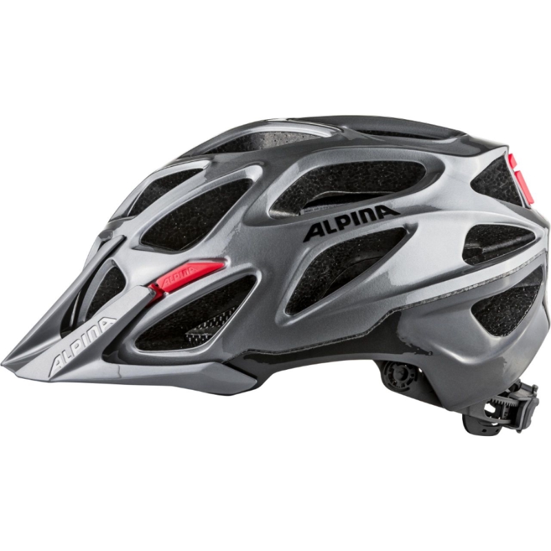 Alpina Mythos je přilba na kolo vyrobená double-in mold technologií. Řada 3.0 je letošní novinkou. Je to již třetí velmi úspěšná série modelu Mythos, který je evergreenem v celé nabídce cyklistických přileb Alpina. Do nové řady 3.0 si model Alpina Mythos přenesl všechny výhody svých předchůdců. Novinkou designu je mírně protažený zátylek a více prokrojený boční tvar přilby oproti řadě 2.0. Asi největší devizou pro naše středoevropské hlavy je, že velmi dobře sedne. Proto tvar vnitřní skořepiny helmy zůstal stejný. Vrchní plastová skořepina je znovu z polykarbonátu, který se používá např. i jako folie do neprůstřelných oken. Přilba je výborně odvětraná pomocí 25- ti větracích otvorů, v přední části přilby je ochranná síťka proti hmyzu. Seřizování velikosti pomocí nového „Run System Ergo +“, který se dá ovládat velmi pohodlně i za jízdy pouze jednou rukou a nově také „Swing Fit System“, který slouží k nastavení 3 různých úhlů seřizovacího mechanismu podle velikosti a tvaru zátylku. Cyklistická přilba Alpina Mythos se vyrábí ve velikostech 52-57cm, 57-62cm a vybrané modely 59-64cm. Hmotnost přilby je 245g.