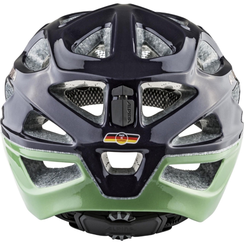 Alpina Mythos je přilba na kolo vyrobená double-in mold technologií. Řada 3.0 je letošní novinkou. Je to již třetí velmi úspěšná série modelu Mythos, který je evergreenem v celé nabídce cyklistických přileb Alpina. Do nové řady 3.0 si model Alpina Mythos přenesl všechny výhody svých předchůdců. Novinkou designu je mírně protažený zátylek a více prokrojený boční tvar přilby oproti řadě 2.0. Asi největší devizou pro naše středoevropské hlavy je, že velmi dobře sedne. Proto tvar vnitřní skořepiny helmy zůstal stejný. Vrchní plastová skořepina je znovu z polykarbonátu, který se používá např. i jako folie do neprůstřelných oken. Přilba je výborně odvětraná pomocí 25- ti větracích otvorů, v přední části přilby je ochranná síťka proti hmyzu. Seřizování velikosti pomocí nového „Run System Ergo +“, který se dá ovládat velmi pohodlně i za jízdy pouze jednou rukou a nově také „Swing Fit System“, který slouží k nastavení 3 různých úhlů seřizovacího mechanismu podle velikosti a tvaru zátylku. Cyklistická přilba Alpina Mythos se vyrábí ve velikostech 52-57cm, 57-62cm a vybrané modely 59-64cm. Hmotnost přilby je 245g.