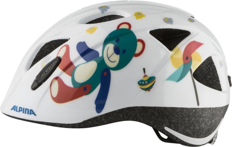 Dětská helma na kolo Alpina Ximo - je cíleně vyrobena pro nejmenší cyklisty. Zadní část přilby je velmi plochá, aby se malý cyklista mohl pohodlně opřít o sedačku ve které sedí a hlava mu nepadala dopředu, když usne. Díky velikosti 45-49 cm je vhodná i pro cca 1 leté děti, které jsou už schopny sedět v sedačce kola. Jako u všech přileb vyráběných v Alpině je samozřejmě i tato plastová skořepina na vrchní straně přilby z velmi kvalitního polykarbonátu, který se používá např. i jako folie do neprůstřelných oken. Helma je vyrobena tou nejmodernější současnou technologií in-mold. Přilba je odvětraná pomocí 12ti větracích otvorů. V přední části helmy je ochranná síťka proti hmyzu, na zadní části jsou dva bezpečnostní reflexní pruhy. Do přilby lze dokoupit blikačku a dětskou čepičku na chladnější dny na jaře či podzim - viz "Příslušenství Alpina" v levém sloupci e-shopu. Seřizování velikosti je pomocí „Run System“, který se dá ovládat velmi pohodlně i za jízdy pouze jednou rukou. Helma se vyrábí ve třech velikostech 45-49cm, 47-51cm a 49-54 cm. Hmotnost přilby je velmi slušných 220g. Ximo je dětská přilba na kolo absolutní světové úrovně.