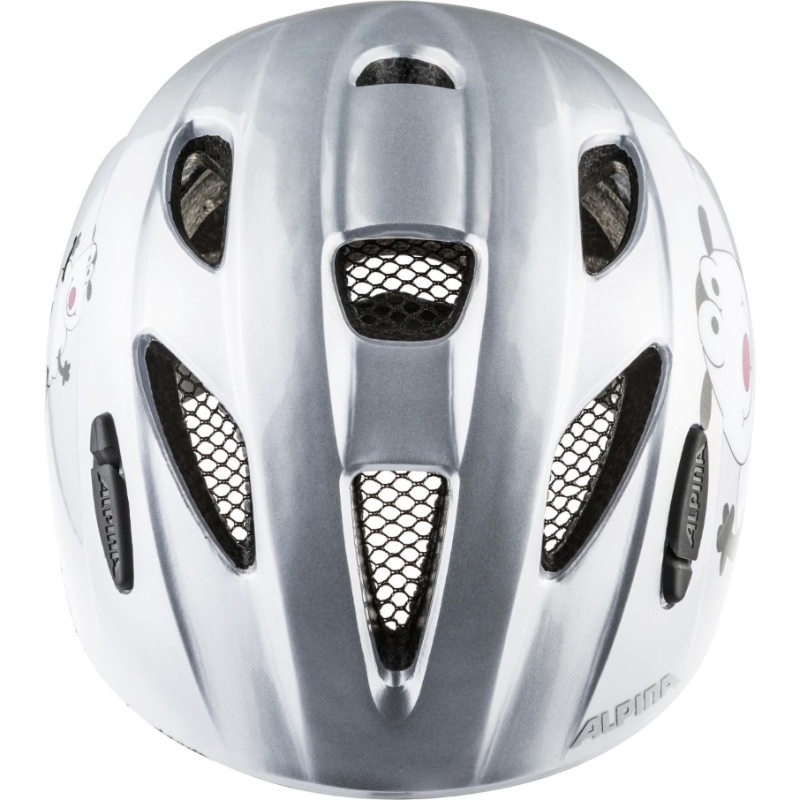 Dětská helma na kolo Alpina Ximo - je cíleně vyrobena pro nejmenší cyklisty. Zadní část přilby je velmi plochá, aby se malý cyklista mohl pohodlně opřít o sedačku ve které sedí a hlava mu nepadala dopředu, když usne. Díky velikosti 45-49 cm je vhodná i pro cca 1 leté děti, které jsou už schopny sedět v sedačce kola. Jako u všech přileb vyráběných v Alpině je samozřejmě i tato plastová skořepina na vrchní straně přilby z velmi kvalitního polykarbonátu, který se používá např. i jako folie do neprůstřelných oken. Helma je vyrobena tou nejmodernější současnou technologií in-mold. Přilba je odvětraná pomocí 12ti větracích otvorů. V přední části helmy je ochranná síťka proti hmyzu, na zadní části jsou dva bezpečnostní reflexní pruhy. Do přilby lze dokoupit blikačku a dětskou čepičku na chladnější dny na jaře či podzim - viz "Příslušenství Alpina" v levém sloupci e-shopu. Seřizování velikosti je pomocí „Run System“, který se dá ovládat velmi pohodlně i za jízdy pouze jednou rukou. Helma se vyrábí ve třech velikostech 45-49cm, 47-51cm a 49-54 cm. Hmotnost přilby je velmi slušných 220g. Ximo je dětská přilba na kolo absolutní světové úrovně.