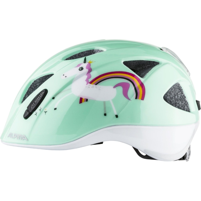 Dětská helma na kolo Alpina Ximo Flash - je cíleně vyrobena pro nejmenší cyklisty. Zadní část přilby je velmi plochá, aby se malý cyklista mohl pohodlně opřít o sedačku ve které sedí a hlava mu nepadala dopředu, když usne. Díky velikosti 45-49 cm je vhodná i pro cca 1 leté děti, které jsou už schopny sedět v sedačce kola. Jako u všech přileb vyráběných v Alpině je samozřejmě i tato plastová skořepina na vrchní straně přilby z velmi kvalitního polykarbonátu, který se používá např. i jako folie do neprůstřelných oken. Helma je vyrobena tou nejmodernější současnou technologií in-mold a v tomto případě dokonce triple in-mold (plast je i na celém obvodu spodní strany přilby). Přilba je odvětraná pomocí 11ti větracích otvorů. V přední části helmy je ochranná síťka proti hmyzu, na zadní části je odnímatelná blikačka a dva bezpečnostní reflexní pruhy. Do přilby lze dokoupit dětskou čepičku na chladnější dny na jaře či podzim - viz "Příslušenství Alpina" v levém sloupci e-shopu. Seřizování velikosti je pomocí „Run System“, který se dá ovládat velmi pohodlně i za jízdy pouze jednou rukou. Helma se vyrábí ve třech velikostech 45-49cm, 47-51cm a 49-54 cm. Hmotnost přilby je velmi slušných 230g. Ximo je dětská přilba na kolo absolutní světové úrovně.