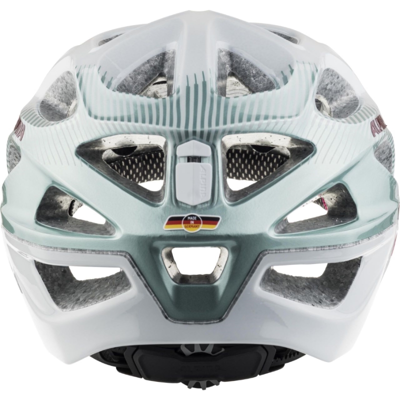 Alpina Mythos je přilba na kolo vyrobená double-in mold technologií. Řada 3.0 je letošní novinkou. Je to již třetí velmi úspěšná série modelu Mythos, který je evergreenem v celé nabídce cyklistických přileb Alpina. Do nové řady 3.0 si model Alpina Mythos přenesl všechny výhody svých předchůdců. Novinkou designu je mírně protažený zátylek a více prokrojený boční tvar přilby oproti řadě 2.0. Asi největší devizou pro naše středoevropské hlavy je, že velmi dobře sedne. Proto tvar vnitřní skořepiny helmy zůstal stejný. Vrchní plastová skořepina je znovu z polykarbonátu, který se používá např. i jako folie do neprůstřelných oken. Přilba je výborně odvětraná pomocí 25- ti větracích otvorů, v přední části přilby je ochranná síťka proti hmyzu. Seřizování velikosti pomocí nového „Run System Ergo +“, který se dá ovládat velmi pohodlně i za jízdy pouze jednou rukou a nově také „Swing Fit System“, který slouží k nastavení 3 různých úhlů seřizovacího mechanismu podle velikosti a tvaru zátylku. Cyklistická přilba Alpina Mythos se vyrábí ve velikostech 52-57cm, 57-62cm a vybrané modely 59-64cm. Hmotnost přilby je 245g.