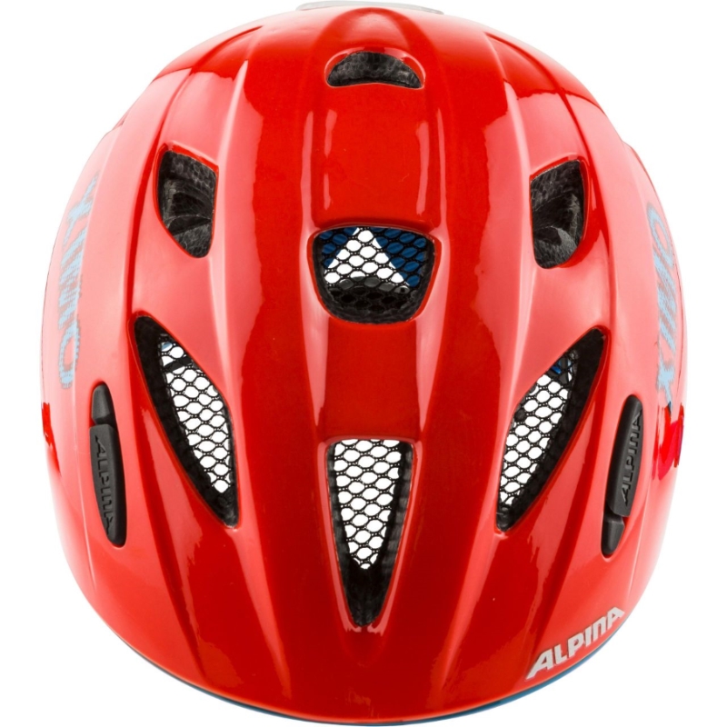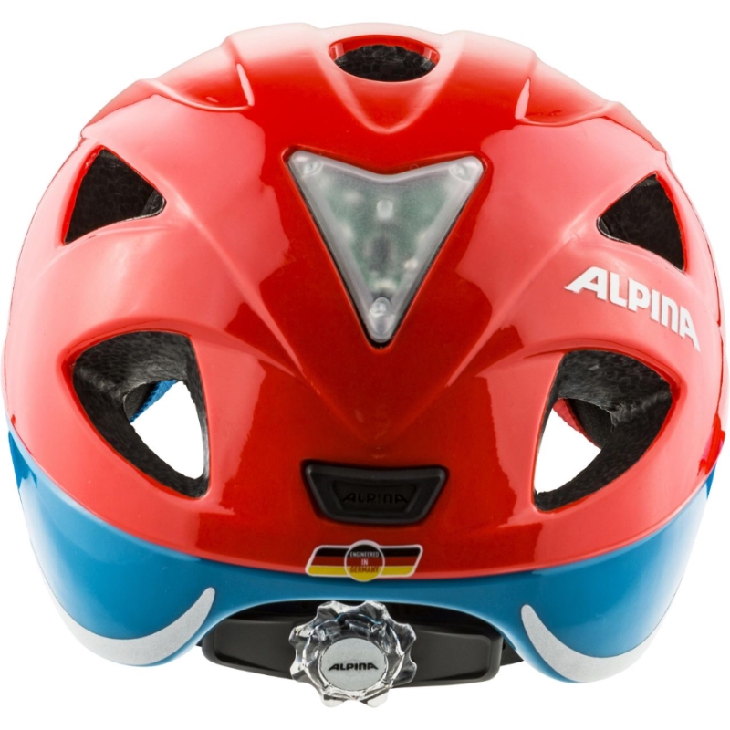 Dětská helma na kolo Alpina Ximo Flash - je cíleně vyrobena pro nejmenší cyklisty. Zadní část přilby je velmi plochá, aby se malý cyklista mohl pohodlně opřít o sedačku ve které sedí a hlava mu nepadala dopředu, když usne. Díky velikosti 45-49 cm je vhodná i pro cca 1 leté děti, které jsou už schopny sedět v sedačce kola. Jako u všech přileb vyráběných v Alpině je samozřejmě i tato plastová skořepina na vrchní straně přilby z velmi kvalitního polykarbonátu, který se používá např. i jako folie do neprůstřelných oken. Helma je vyrobena tou nejmodernější současnou technologií in-mold a v tomto případě dokonce triple in-mold (plast je i na celém obvodu spodní strany přilby). Přilba je odvětraná pomocí 11ti větracích otvorů. V přední části helmy je ochranná síťka proti hmyzu, na zadní části je odnímatelná blikačka a dva bezpečnostní reflexní pruhy. Do přilby lze dokoupit dětskou čepičku na chladnější dny na jaře či podzim - viz "Příslušenství Alpina" v levém sloupci e-shopu. Seřizování velikosti je pomocí „Run System“, který se dá ovládat velmi pohodlně i za jízdy pouze jednou rukou. Helma se vyrábí ve třech velikostech 45-49cm, 47-51cm a 49-54 cm. Hmotnost přilby je velmi slušných 230g. Ximo je dětská přilba na kolo absolutní světové úrovně.