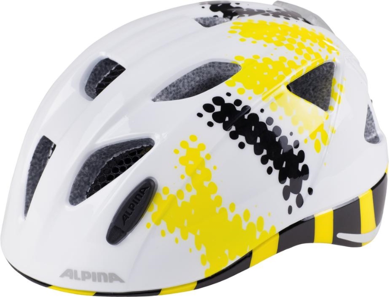 Dětská helma na kolo Alpina Ximo Flash - je cíleně vyrobena pro nejmenší cyklisty. Zadní část přilby je velmi plochá, aby se malý cyklista mohl pohodlně opřít o sedačku ve které sedí a hlava mu nepadala dopředu, když usne. Díky velikosti 45-49 cm je vhodná i pro cca 1 leté děti, které jsou už schopny sedět v sedačce kola. Jako u všech přileb vyráběných v Alpině je samozřejmě i tato plastová skořepina na vrchní straně přilby z velmi kvalitního polykarbonátu, který se používá např. i jako folie do neprůstřelných oken. Helma je vyrobena tou nejmodernější současnou technologií in-mold a v tomto případě dokonce triple in-mold (plast je i na celém obvodu spodní strany přilby). Přilba je odvětraná pomocí 11ti větracích otvorů. V přední části helmy je ochranná síťka proti hmyzu, na zadní části je odnímatelná blikačka a dva bezpečnostní reflexní pruhy. Do přilby lze dokoupit dětskou čepičku na chladnější dny na jaře či podzim - viz "Příslušenství Alpina" v levém sloupci e-shopu. Seřizování velikosti je pomocí „Run System“, který se dá ovládat velmi pohodlně i za jízdy pouze jednou rukou. Helma se vyrábí ve třech velikostech 45-49cm, 47-51cm a 49-54 cm. Hmotnost přilby je velmi slušných 230g. Ximo je dětská přilba na kolo absolutní světové úrovně.