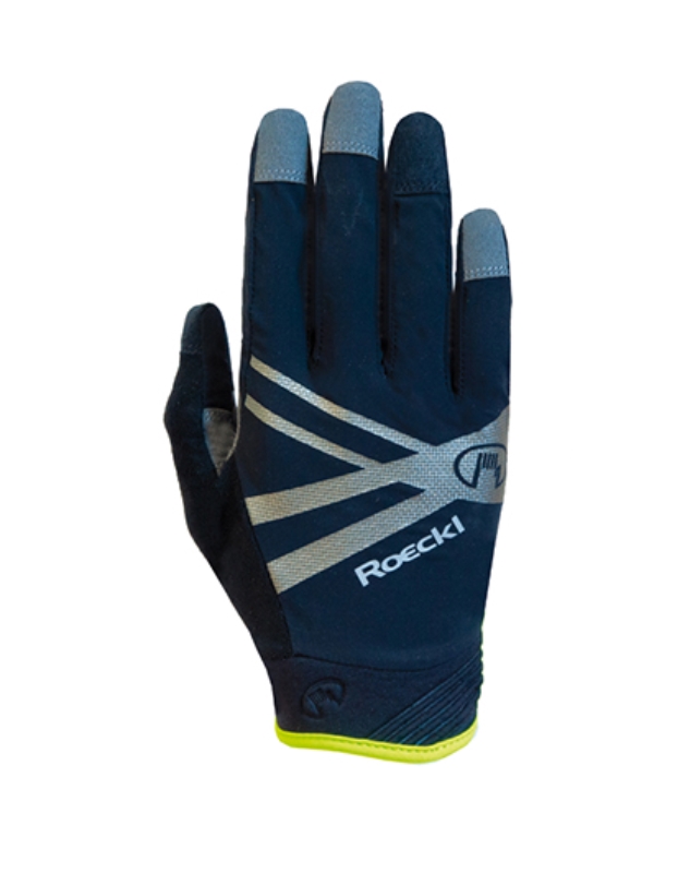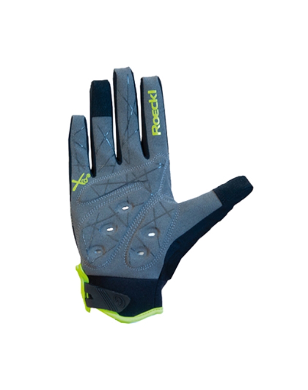 DESCRIPTIONThis high-quality long-fingered glove is the right one for bikers and e-bikers who love flowy trails and riding off the beaten track. And who expect the highest performance from their gloves, no matter if they ride up- or downhill. And who go on really long rides. Thanks to thin and effective XRD® technology damping and ERGONOMIC CUT on the palm made from robust, but still soft and tactile DURADERO, the MALEO prevents hand fatigue on the bike; furthermore, the MALEO features the seamless COMFORT INNOVATION padding at the crook of the thumb by ROECKL and the clever AIR-FLOW-SYSTEM for optimum ventilation. The glove was designed for a close fit and reliable grip on the handlebar using RAIL FINGER CUT with its pre-curved fingers and siliconization: As the material is pulled over the fingertips, the glove becomes even more durable. The backhand consists of sturdy and at the same time comfortable Revolutional Lycra with ECONYL® yarn, which was produced in a sustainable way. This enables the MALEO to withstand the forces on the handlebar, and not even bushes and scrub on the wayside affect it. Last but not least: The TOUCHSCREEN COMPATIBLE feature for using your smartphone and GPS, the soft-wipe thumb to absorb sweat and: the smart’n speedy look with its reflective design elements.