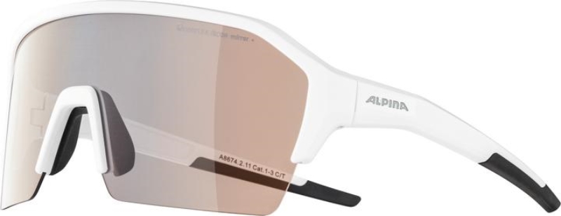 Sportovní brýle ALPINA RAM, jsou brýle s velmi populárním tvarem rámečku. Zrcadlové zorníky jsou fotochromatické - samozatmavovací, zvýrazňují kontrasty barev, mají úpravu proti zamlžení a odpuzování vody. Základní barva zorníků je zrcadlově oranžová, postupným zatmavením se změní do tmavé s modrým zrcadlovým odleskem. Nosníky jsou nastavovací. Váha brýlí je 25g. Šířka zorníku je 14,5cm, výška 5,4cm a délka stranic 14,2cm.