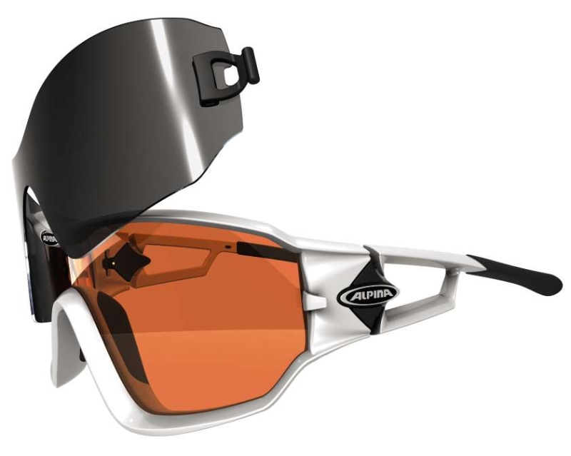 Sportovní brýle ALPINA Swing mají dvoje zorníky. Základní rubínově červený zorník obsahuje 100% UV ochranu včetně polarizačního filtru Quattroflex (tlumí nepříjemné odražené světlo např. od sněhu, vodní plochy, mokré silnice...). Brýle s tímto zorníkem je možné používat za mlhy, při oblačné obloze a také i za mírného slunečního svitu. Druhý zorník, který je součástí balení, je tmavý. Ten je velmi lehce odnímatelný (viz obrázek) a používá se za přímého slunečního svitu. Pro komfortnější usazení mají brýle seřizovatelné nožičky, jejichž spojení se zorníky zajišťují nastavitelné klouby. Tím je možné obroučky zorníků nastavit až do osmi poloh. Koncovky nožiček brýlí jsou z tvarovatelného materiálu, které je možné ohýbat a tím je ještě lépe zafixovat na hlavě. Místo nožiček lze dokoupit a jednoduše namontovat elastickou pásku - viz vlevo sekce "příslušenství".