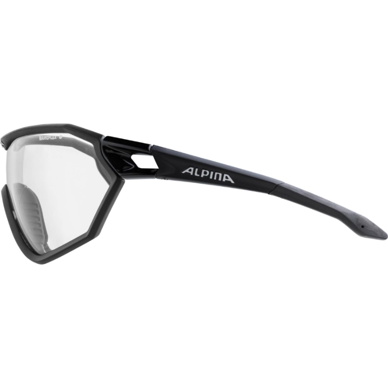 Sportovní fotochromatické Alpina S-WAY. V této variantě "L" je širší rámeček - viz rozměry níže. Samozatmavující se zrcadlové zorníky s úpravou proti zamlžení fogstop. Sportovní brýle, které jdou s posledním módním trendem tvarů a velikostí rámečků sportovních brýlí. Tyto brýle uspokojí každého sportovce. Jsou to multifunkční sportovní brýle na cyklistiku, lyžování, běhání, turistiku, vodní sporty... Brýle mají seřizovatelné nosníky, díky kloubu mají nastavitelné 3 polohy nožiček vůči zorníkům a koncovky nožiček jsou z tvarovatelného materiálu, takže si je můžete ohnout podle velikosti Vaší hlavy. Fotochromatické (samozabarvující se) skla Varioflex VL+ jsou již z druhé vývojové generace. Rozsah zabarvení je skrz všechny tři stupně sluneční ochrany S1-S3 (nejsou vhodné do auta!). Jinak řečeno od čirého zabarvení až po velmi tmavé. Obrázek s rozdílně zatmavenými skly je možné vidět pod hlavní fotkou brýlí. Rychlost zatmavení je velmi rychlé v řádu několika sekund. Je nutné si uvědomit, že všechny fotochromatické filtry, které způsobují zatmavení, reagují na intenzitu UV záření, proto např. uvnitř auta či v budově nebude zatmavení tak intenzivní, jelikož část UV záření odfiltruje sklo auta či okna. Šířka zorníků brýlí je 15,6 cm, výška zorníků je 5,5 cm a délka brýlí je 15,3 cm. Váha je 33g.