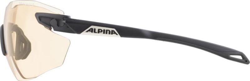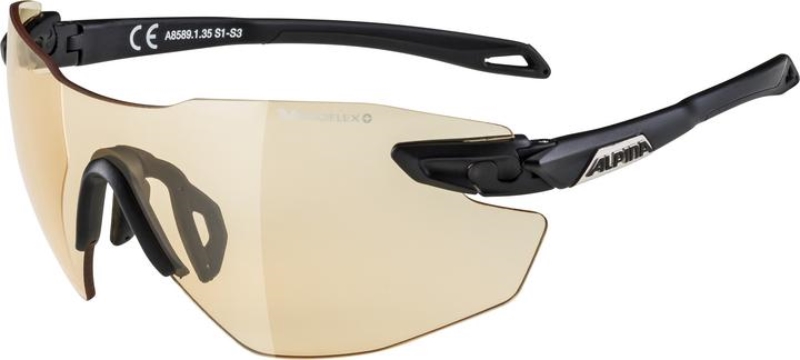 Sportovní fotochromatické brýle Alpina TWIST Five Shield RL VL+. Jsou zde použity fotochromatická (samozabarvující se) skla Varioflex+ . Rozsah zabarvení je skrz všechny tři stupně sluneční ochrany S1-S3. Jinak řečeno od čirého zabarvení až po tmavé. Obrázek s rozdílně zatmavenými skly je možné vidět na levé straně obrazovky v sekci "Příslušenství". Rychlost zatmavení je velmi rychlé v řádu několika sekund. Je nutné si uvědomit, že všechny fotochromatické filtry, které způsobují zatmavení, reagují na intenzitu UV záření, proto např. uvnitř auta či v budově nebude zatmavení tak intenzivní, jelikož část UV záření odfiltruje sklo auta či okna. Další nespornou výhodou je, že tyto skla mají nezamlžující se povrchovou úpravu Fogstop. Jsou to velmi lehké sportovní brýle (hmotnost pouhých 22,6g!!!), u kterých je možné pootočením seřizovat šířku nosníků. Díky kloubu mají nastavitelné 3 polohy nožiček vůči zorníkům a protiskluzové koncovky nožiček. Je zde velmi dobrý poměr "cena/výkon" v porovnání s ostatními značkovými brýlemi s fotochromatickými zorníky.