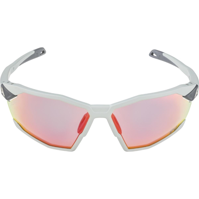 Sportovní fotochromatické brýle Alpina Twist Six QV jsou letošní novinkou v nabídce sportovních brýlí Alpina. Jsou zde použity fotochromatické (samozabarvující se) zorníky Varioflex+ . Rozsah zabarvení je skrz všechny tři stupně sluneční ochrany S1-S3. Zorníky mají také polarizační filtr Quattroflex, který odstraňuje odlesky a zvýrazňuje kontury barev. Zorníky mají povrchovou úpravu stopfog, která zabraňuje zamlžení a hydrophobic, která odpuzuje vodu. Tyto brýle, ne jen na kolo, mají hmotnost 27g. Je možné seřizovat šířku nosníků a také nožičky, které jsou spojeny s rámečkem brýlí kloubem.